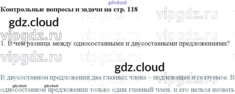 Ответ на задание стр.118 Учебник Русский язык за 8 (восьмой) класс Тростенцова, Ладыженская, Дейкина, Александрова 2014