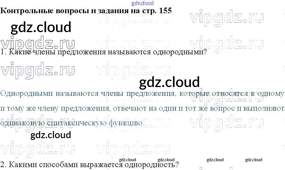 Ответ на задание стр.155 Учебник Русский язык за 8 (восьмой) класс Тростенцова, Ладыженская, Дейкина, Александрова 2014