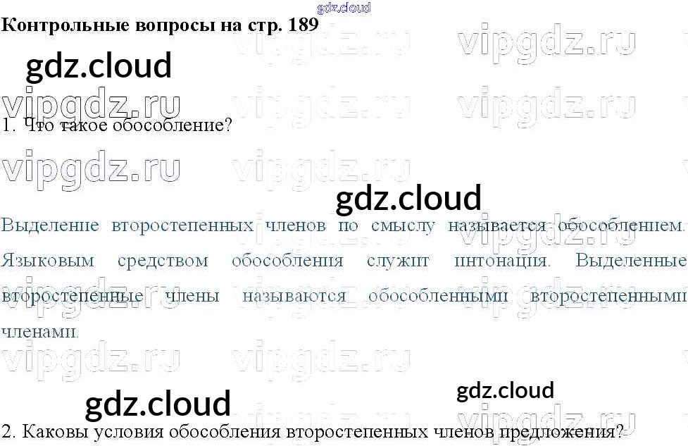 Ответ на задание стр.189 Учебник Русский язык за 8 (восьмой) класс Тростенцова, Ладыженская, Дейкина, Александрова 2014