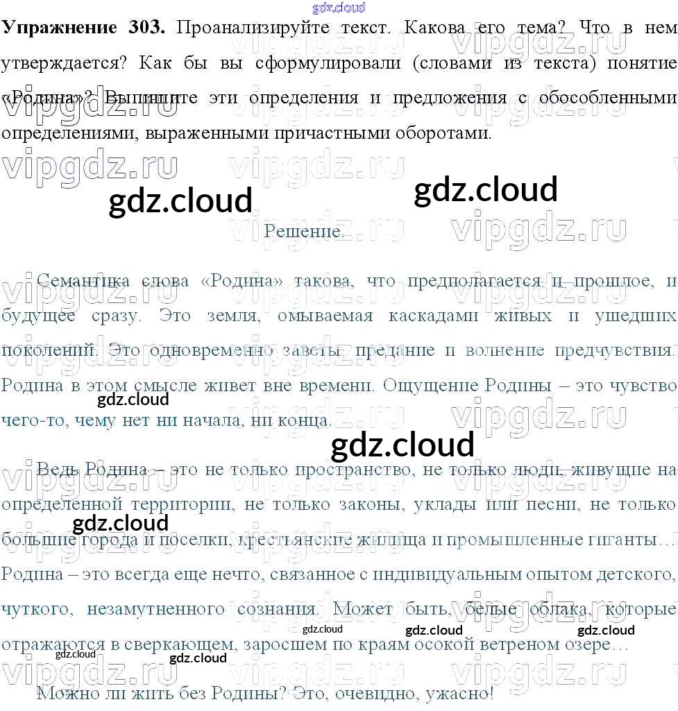 Ответ на задание 303 Учебник Русский язык за 8 (восьмой) класс Тростенцова, Ладыженская, Дейкина, Александрова 2014