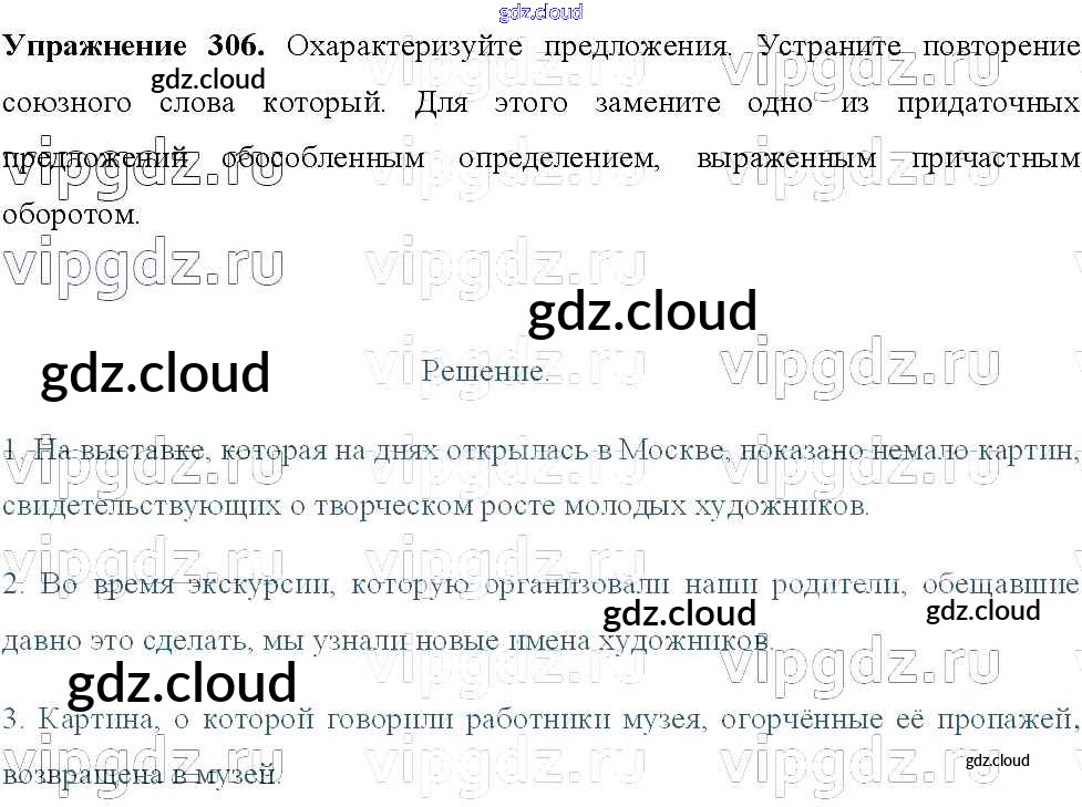 Ответ на задание 306 Учебник Русский язык за 8 (восьмой) класс Тростенцова, Ладыженская, Дейкина, Александрова 2014