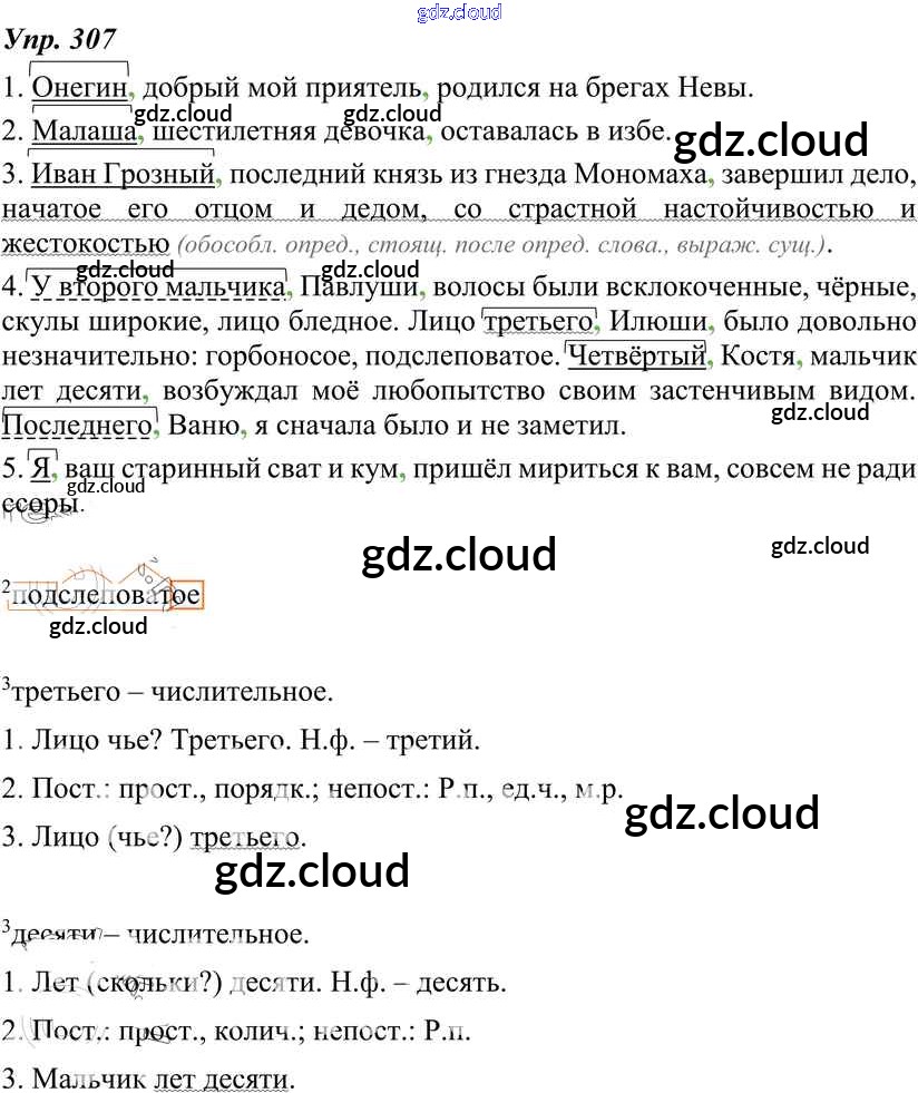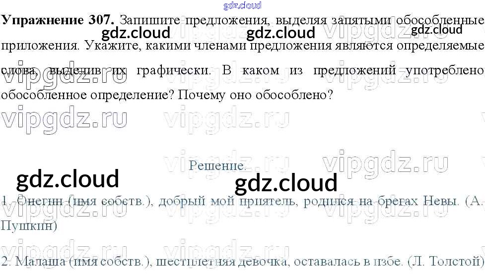 Ответ на задание 307 Учебник Русский язык за 8 (восьмой) класс Тростенцова, Ладыженская, Дейкина, Александрова 2014