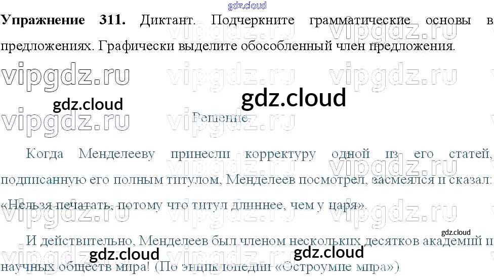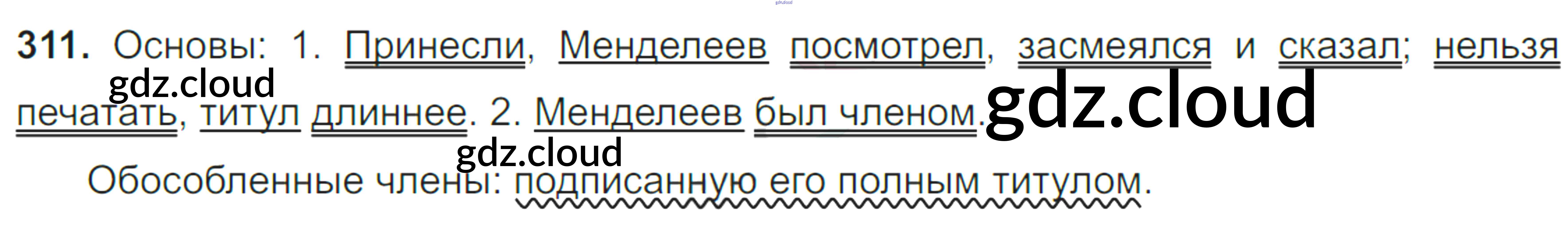 Ответ на задание 311 Учебник Русский язык за 8 (восьмой) класс Тростенцова, Ладыженская, Дейкина, Александрова 2014