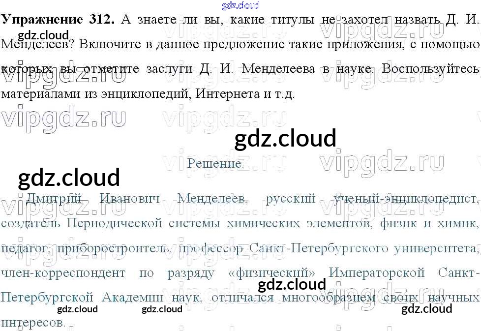 Ответ на задание 312 Учебник Русский язык за 8 (восьмой) класс Тростенцова, Ладыженская, Дейкина, Александрова 2014