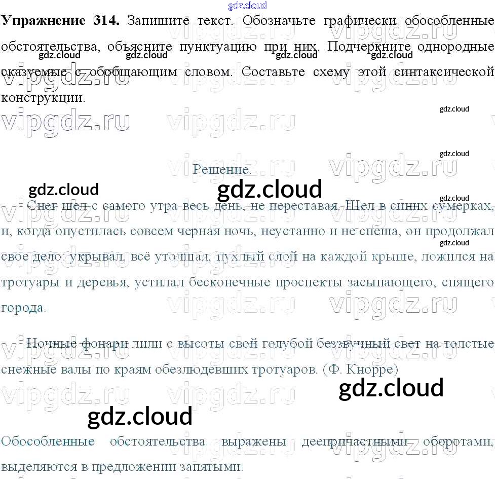 Ответ на задание 314 Учебник Русский язык за 8 (восьмой) класс Тростенцова, Ладыженская, Дейкина, Александрова 2014