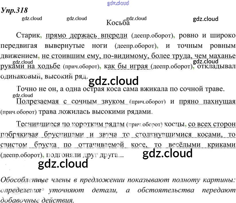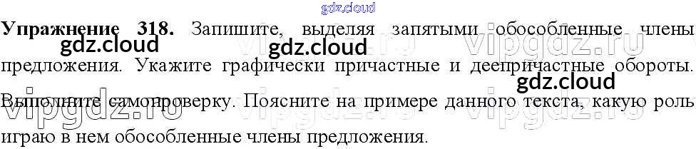 Ответ на задание 318 Учебник Русский язык за 8 (восьмой) класс Тростенцова, Ладыженская, Дейкина, Александрова 2014