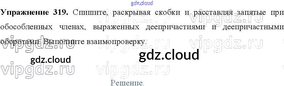 Ответ на задание 319 Учебник Русский язык за 8 (восьмой) класс Тростенцова, Ладыженская, Дейкина, Александрова 2014