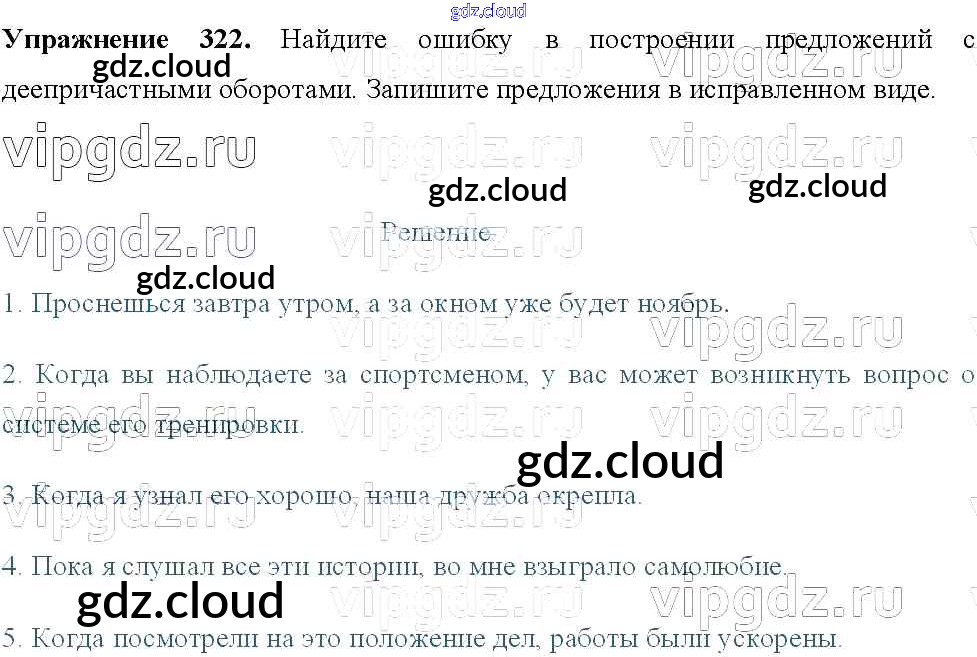 Ответ на задание 322 Учебник Русский язык за 8 (восьмой) класс Тростенцова, Ладыженская, Дейкина, Александрова 2014