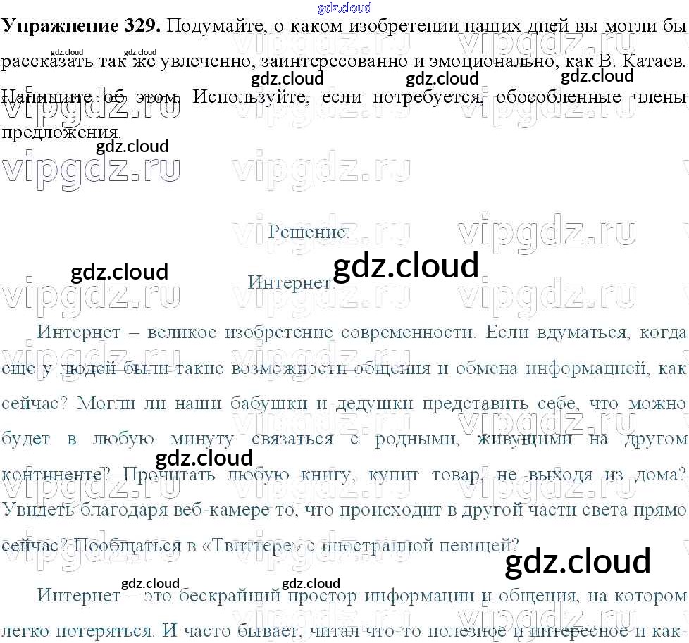 Ответ на задание 329 Учебник Русский язык за 8 (восьмой) класс Тростенцова, Ладыженская, Дейкина, Александрова 2014