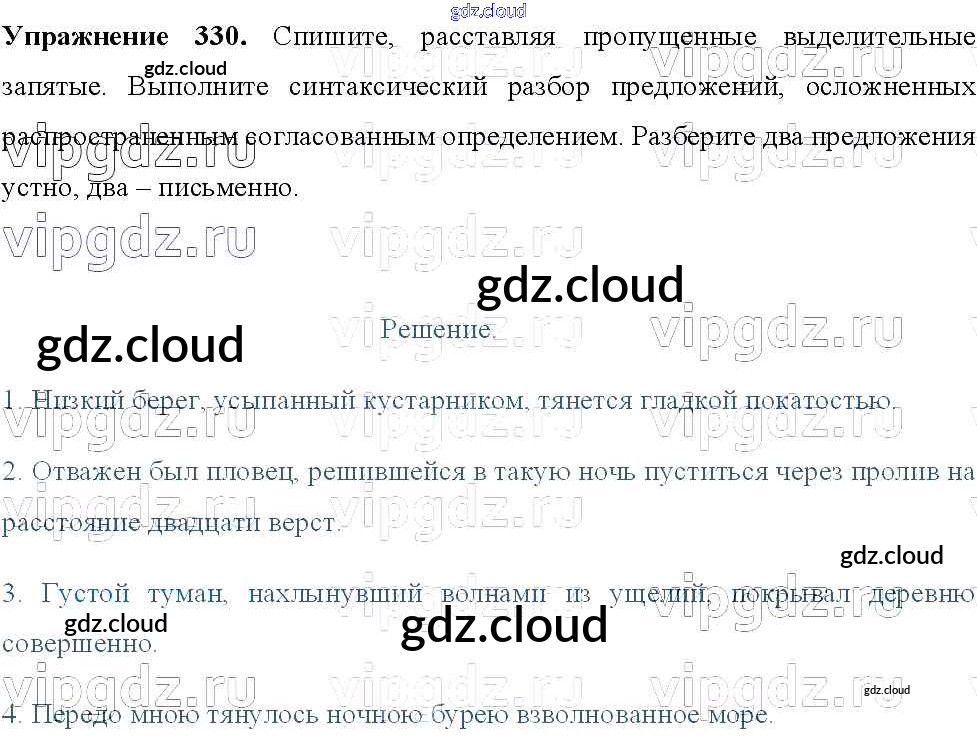 Ответ на задание 330 Учебник Русский язык за 8 (восьмой) класс Тростенцова, Ладыженская, Дейкина, Александрова 2014
