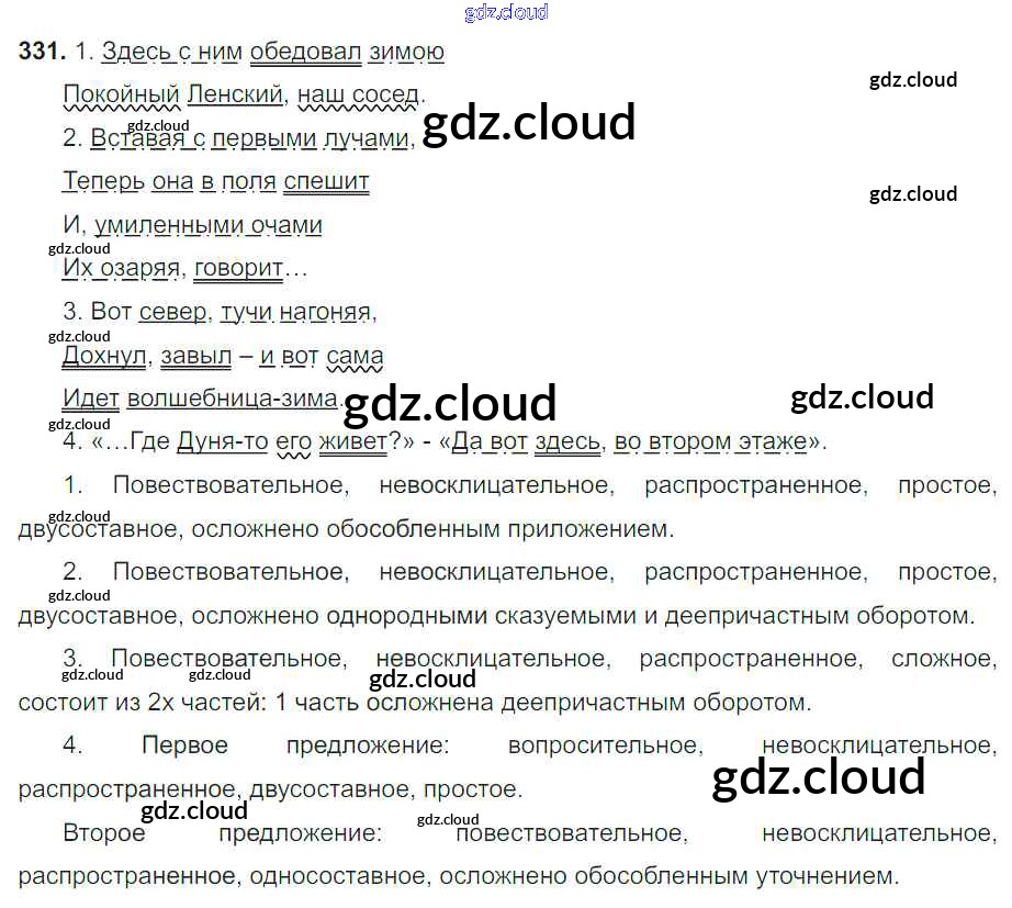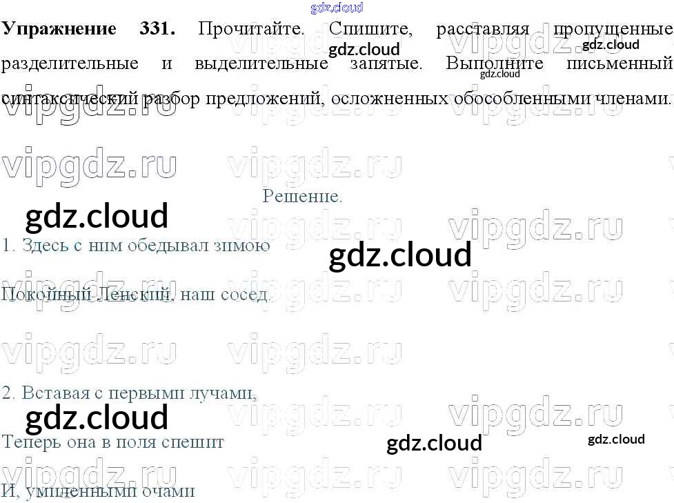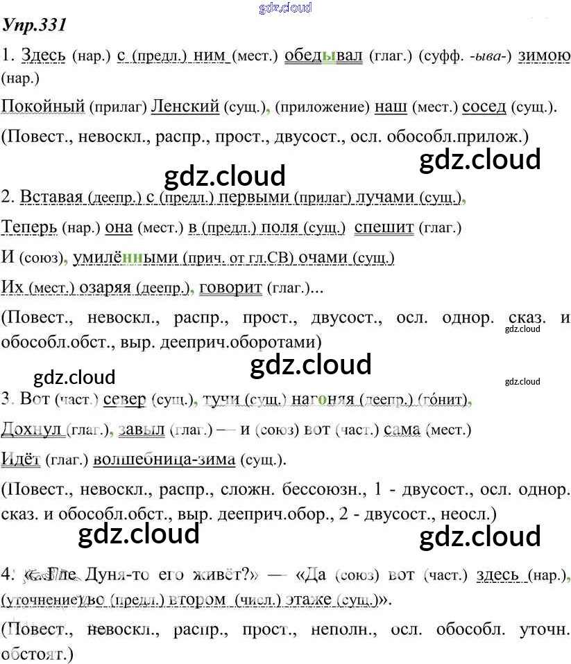 Ответ на задание 331 Учебник Русский язык за 8 (восьмой) класс Тростенцова, Ладыженская, Дейкина, Александрова 2014