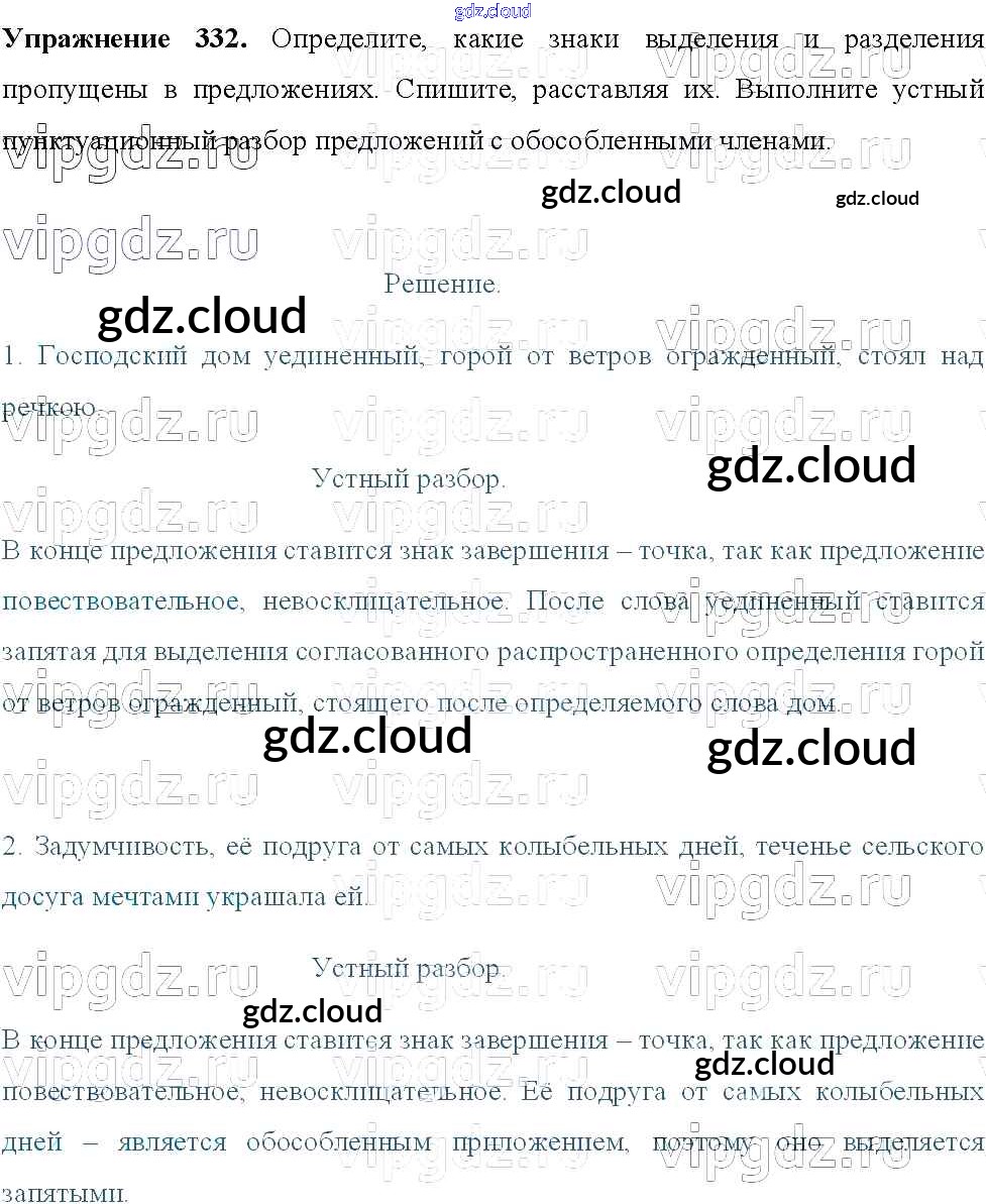 Ответ на задание 332 Учебник Русский язык за 8 (восьмой) класс Тростенцова, Ладыженская, Дейкина, Александрова 2014
