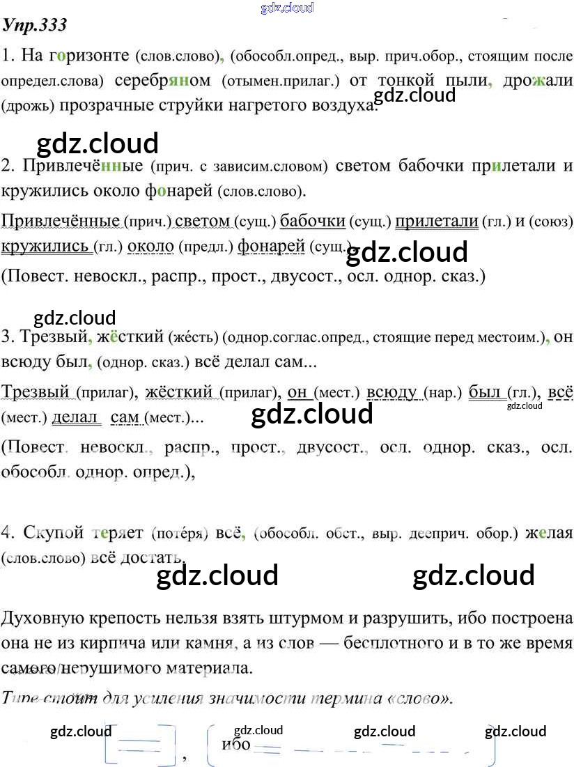 Ответ на задание 333 Учебник Русский язык за 8 (восьмой) класс Тростенцова, Ладыженская, Дейкина, Александрова 2014