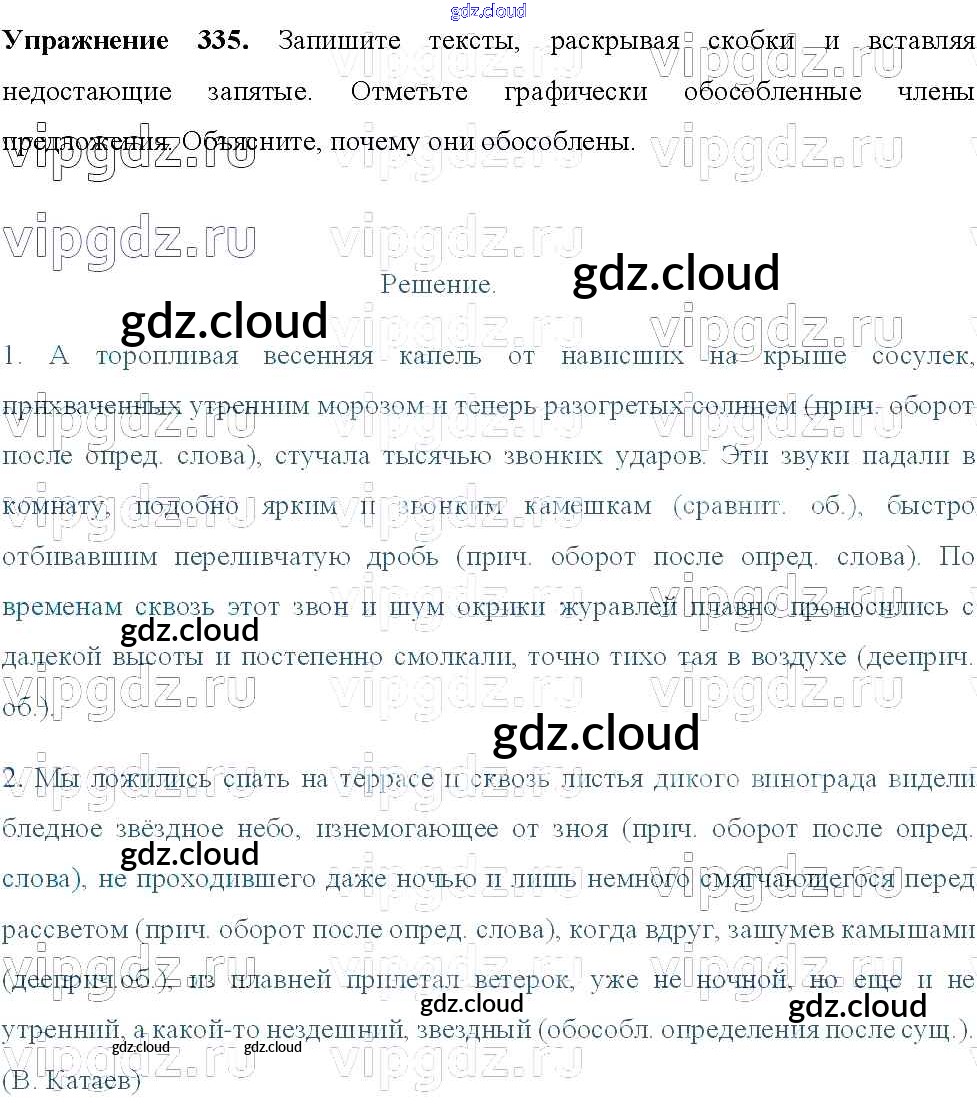 Ответ на задание 335 Учебник Русский язык за 8 (восьмой) класс Тростенцова, Ладыженская, Дейкина, Александрова 2014