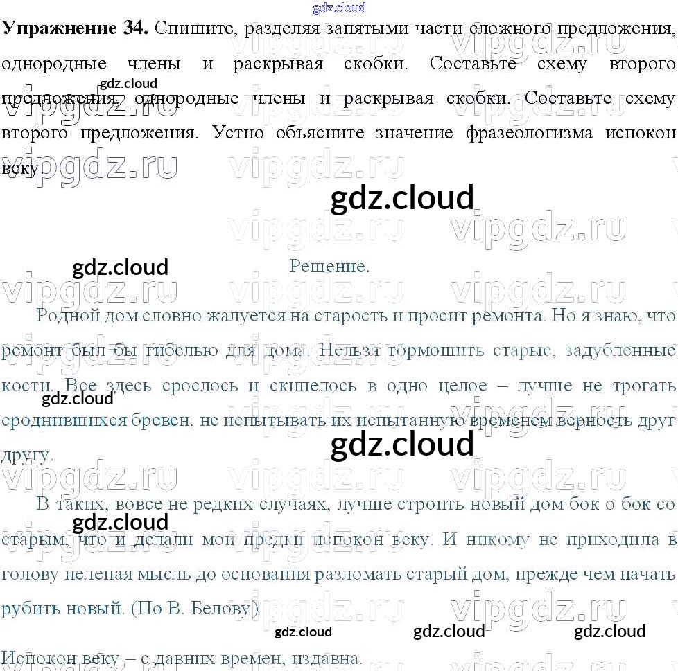 Ответ на задание 34 Учебник Русский язык за 8 (восьмой) класс Тростенцова, Ладыженская, Дейкина, Александрова 2014