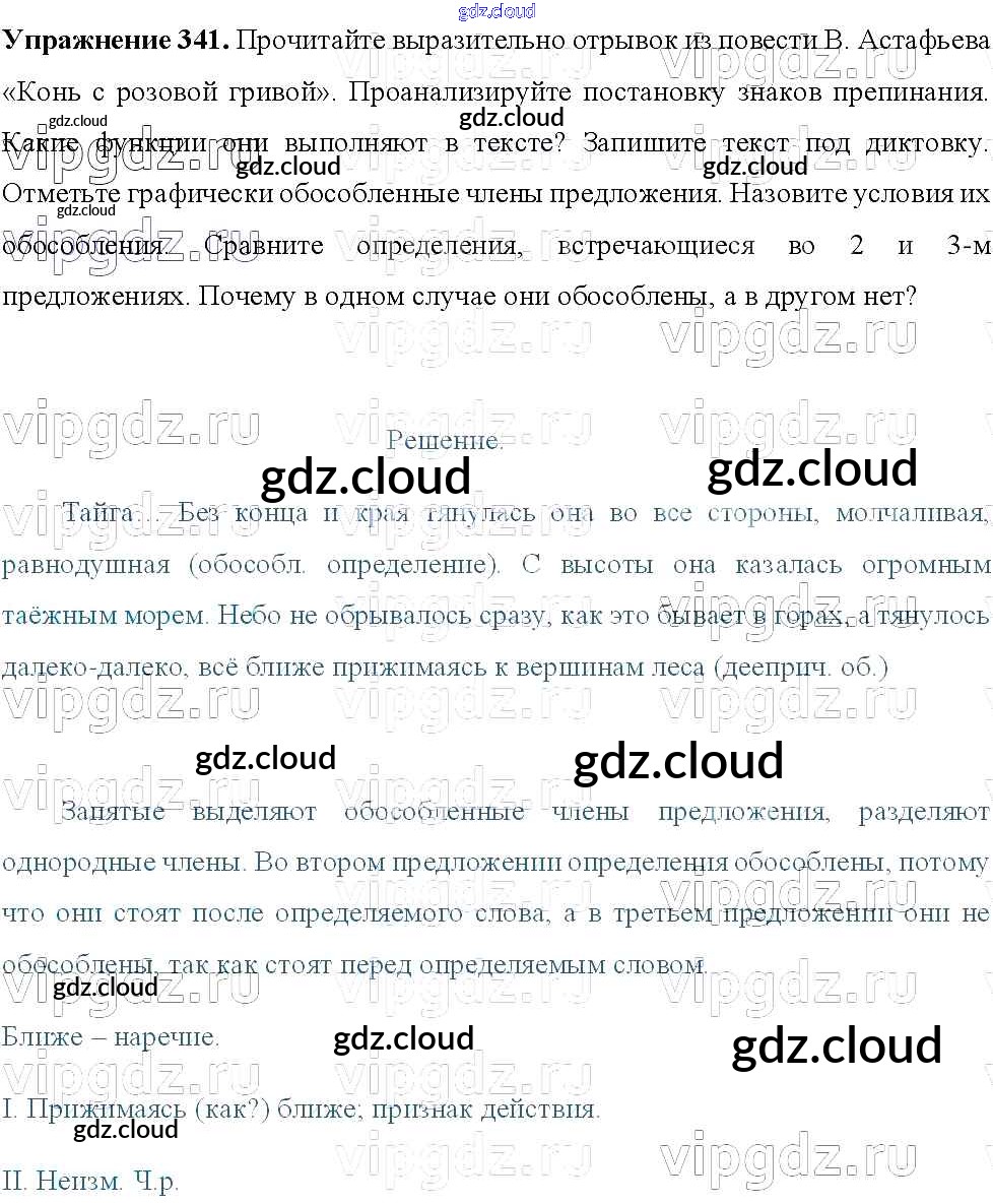 Ответ на задание 341 Учебник Русский язык за 8 (восьмой) класс Тростенцова, Ладыженская, Дейкина, Александрова 2014