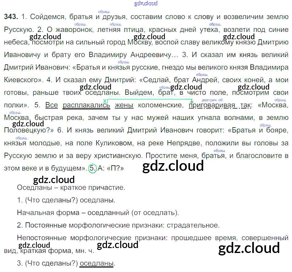 Ответ на задание 343 Учебник Русский язык за 8 (восьмой) класс Тростенцова, Ладыженская, Дейкина, Александрова 2014