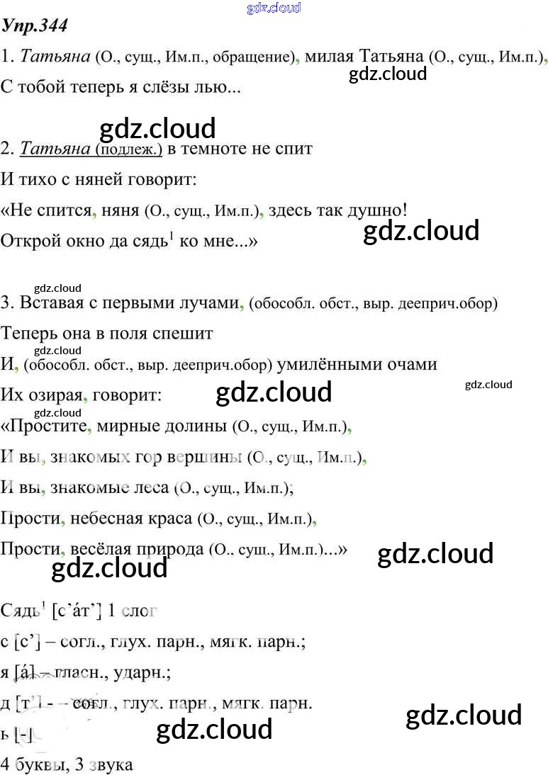 Ответ на задание 344 Учебник Русский язык за 8 (восьмой) класс Тростенцова, Ладыженская, Дейкина, Александрова 2014