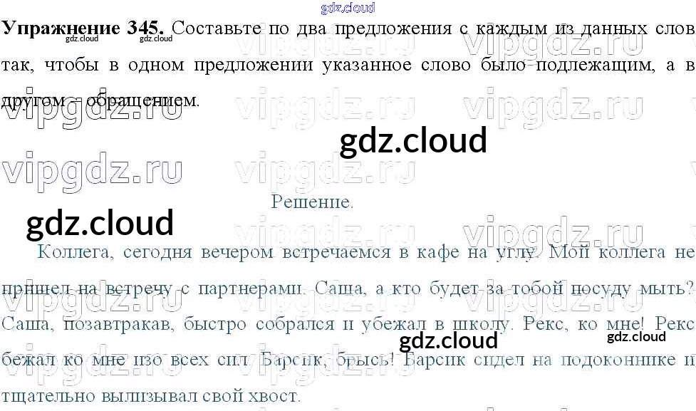 Ответ на задание 345 Учебник Русский язык за 8 (восьмой) класс Тростенцова, Ладыженская, Дейкина, Александрова 2014