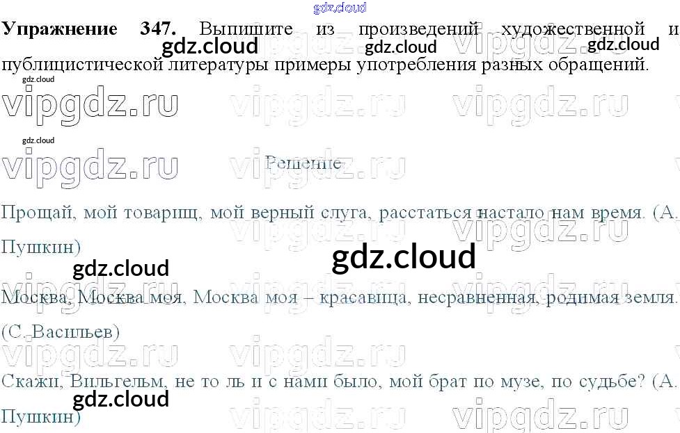 Ответ на задание 347 Учебник Русский язык за 8 (восьмой) класс Тростенцова, Ладыженская, Дейкина, Александрова 2014
