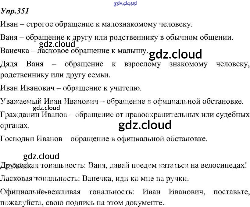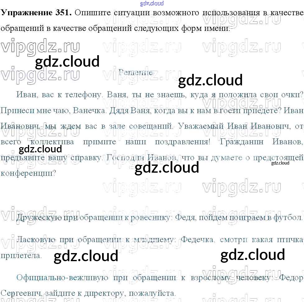 Ответ на задание 351 Учебник Русский язык за 8 (восьмой) класс Тростенцова, Ладыженская, Дейкина, Александрова 2014