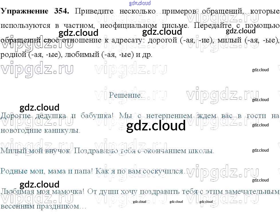 Ответ на задание 354 Учебник Русский язык за 8 (восьмой) класс Тростенцова, Ладыженская, Дейкина, Александрова 2014
