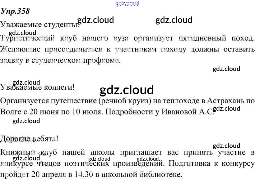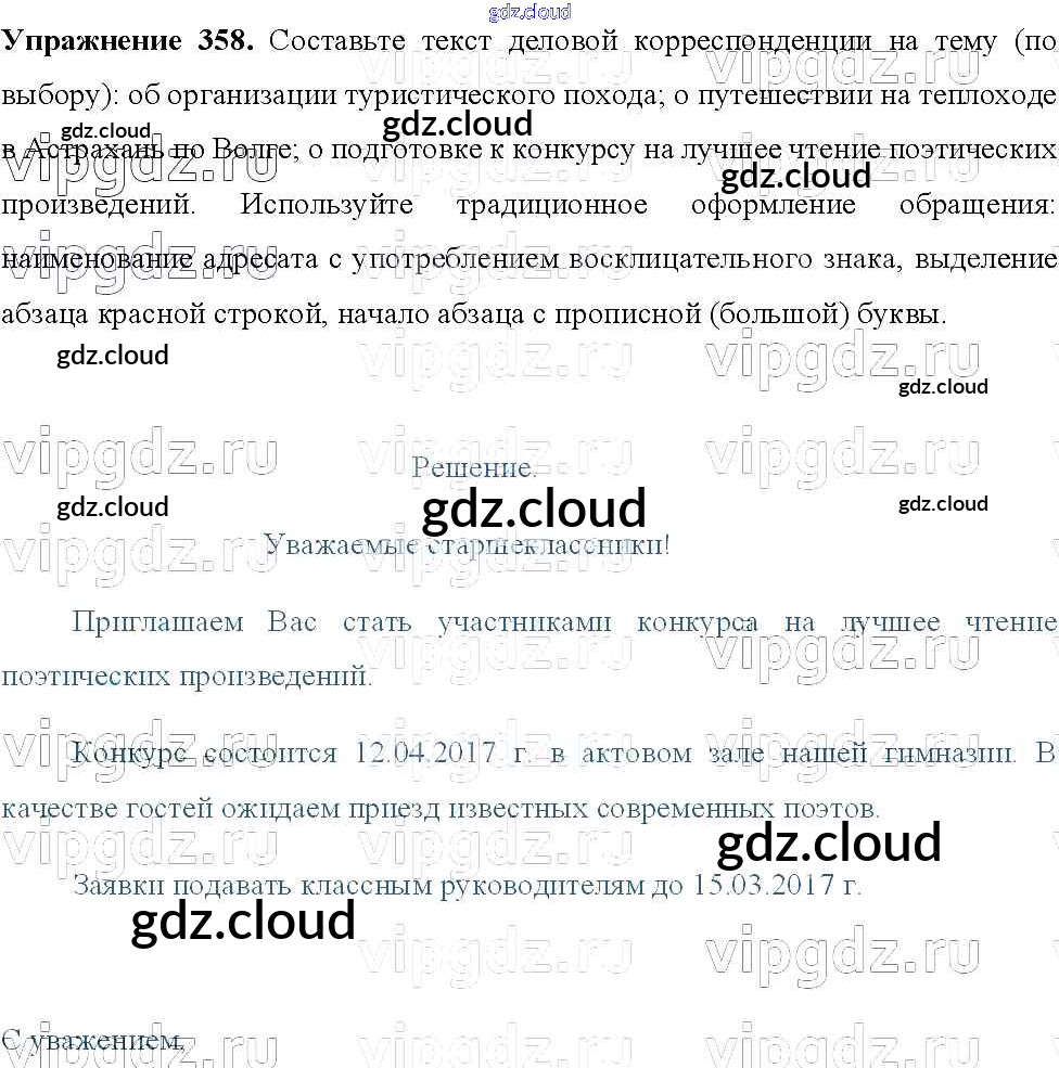 Ответ на задание 358 Учебник Русский язык за 8 (восьмой) класс Тростенцова, Ладыженская, Дейкина, Александрова 2014