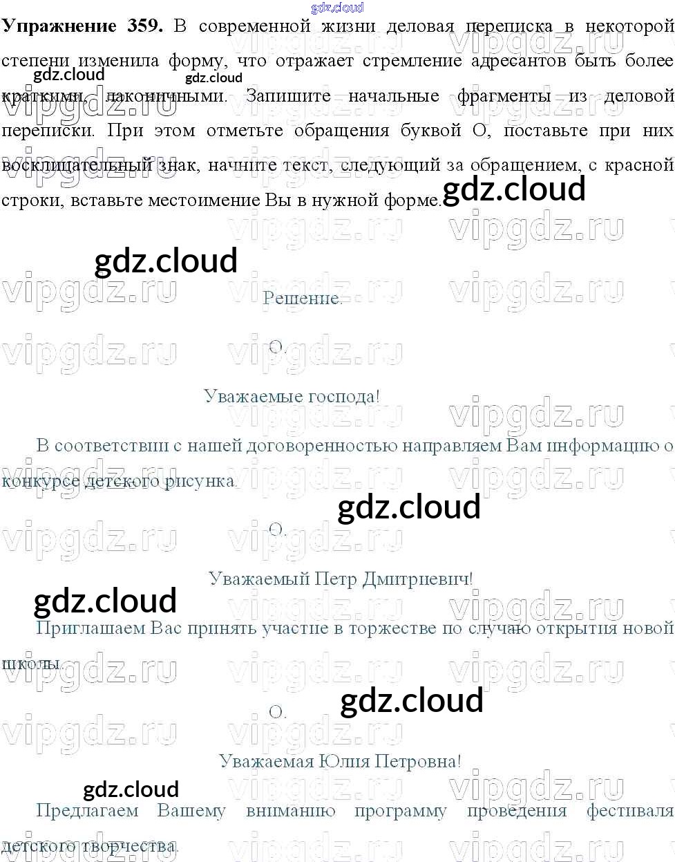 Ответ на задание 359 Учебник Русский язык за 8 (восьмой) класс Тростенцова, Ладыженская, Дейкина, Александрова 2014