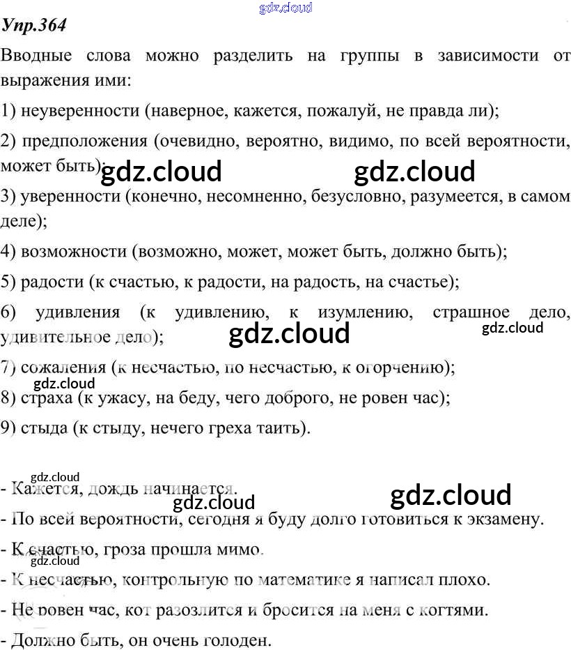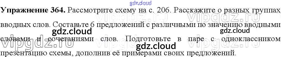 Ответ на задание 364 Учебник Русский язык за 8 (восьмой) класс Тростенцова, Ладыженская, Дейкина, Александрова 2014
