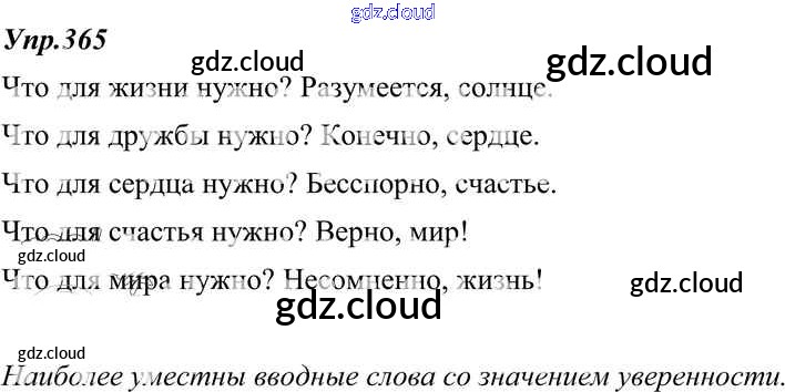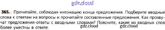 Ответ на задание 365 Учебник Русский язык за 8 (восьмой) класс Тростенцова, Ладыженская, Дейкина, Александрова 2014