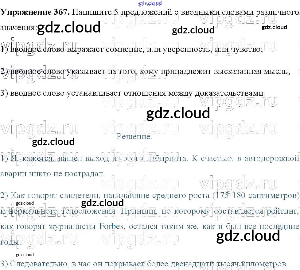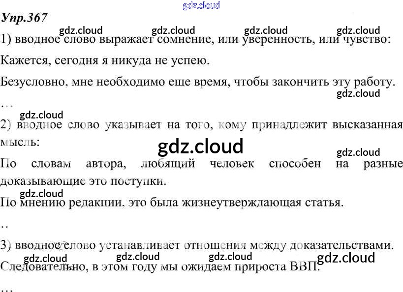 Ответ на задание 367 Учебник Русский язык за 8 (восьмой) класс Тростенцова, Ладыженская, Дейкина, Александрова 2014