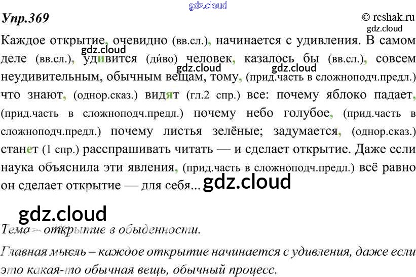 Ответ на задание 369 Учебник Русский язык за 8 (восьмой) класс Тростенцова, Ладыженская, Дейкина, Александрова 2014