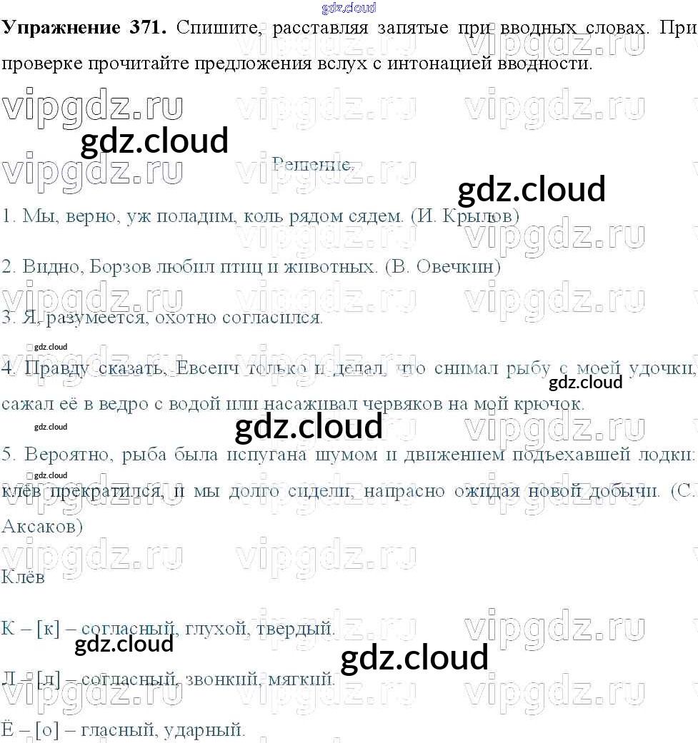 Ответ на задание 371 Учебник Русский язык за 8 (восьмой) класс Тростенцова, Ладыженская, Дейкина, Александрова 2014