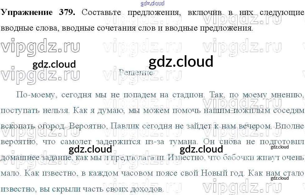 Ответ на задание 379 Учебник Русский язык за 8 (восьмой) класс Тростенцова, Ладыженская, Дейкина, Александрова 2014
