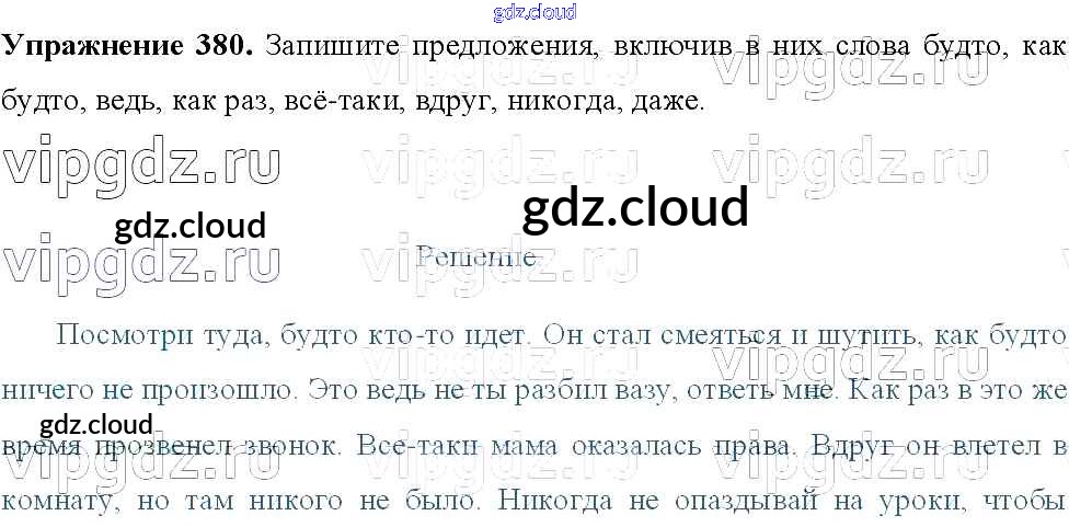 Ответ на задание 380 Учебник Русский язык за 8 (восьмой) класс Тростенцова, Ладыженская, Дейкина, Александрова 2014