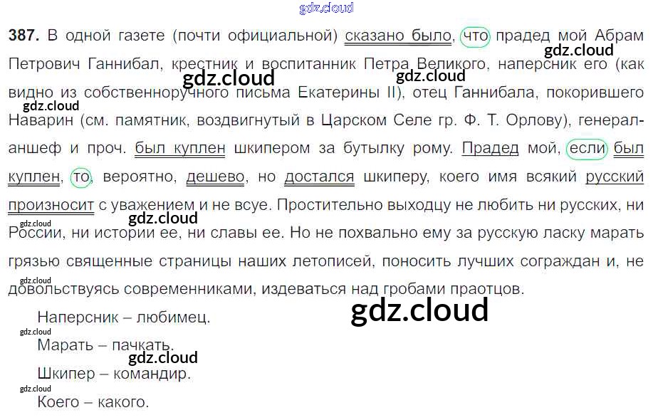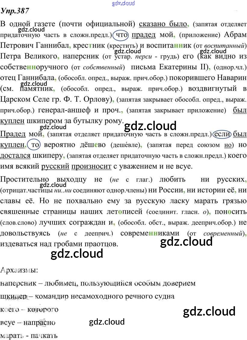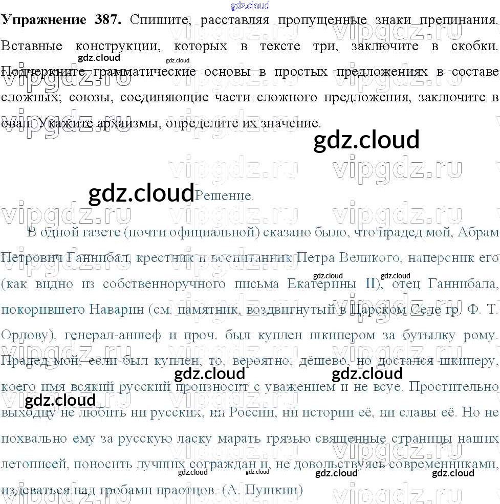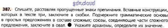 Ответ на задание 387 Учебник Русский язык за 8 (восьмой) класс Тростенцова, Ладыженская, Дейкина, Александрова 2014
