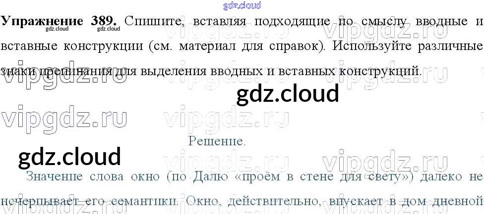Ответ на задание 389 Учебник Русский язык за 8 (восьмой) класс Тростенцова, Ладыженская, Дейкина, Александрова 2014