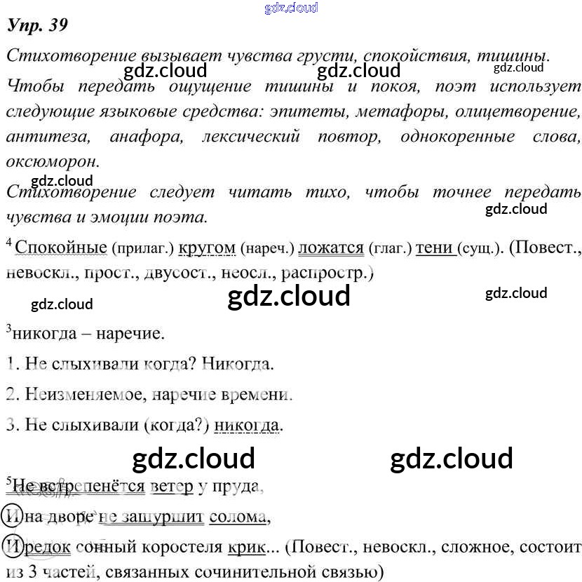 Ответ на задание 39 Учебник Русский язык за 8 (восьмой) класс Тростенцова, Ладыженская, Дейкина, Александрова 2014