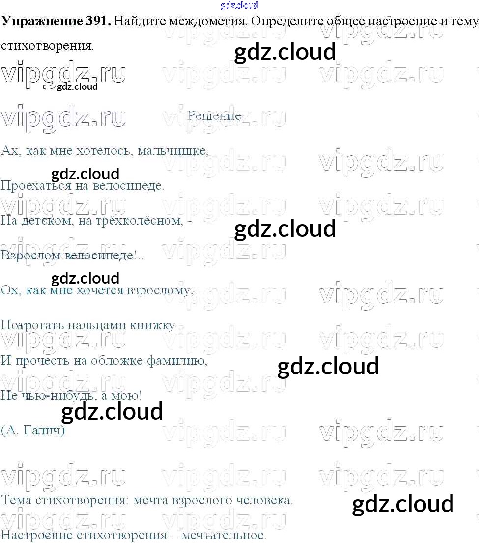 Ответ на задание 391 Учебник Русский язык за 8 (восьмой) класс Тростенцова, Ладыженская, Дейкина, Александрова 2014