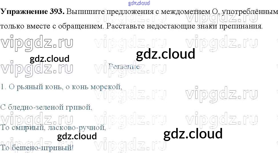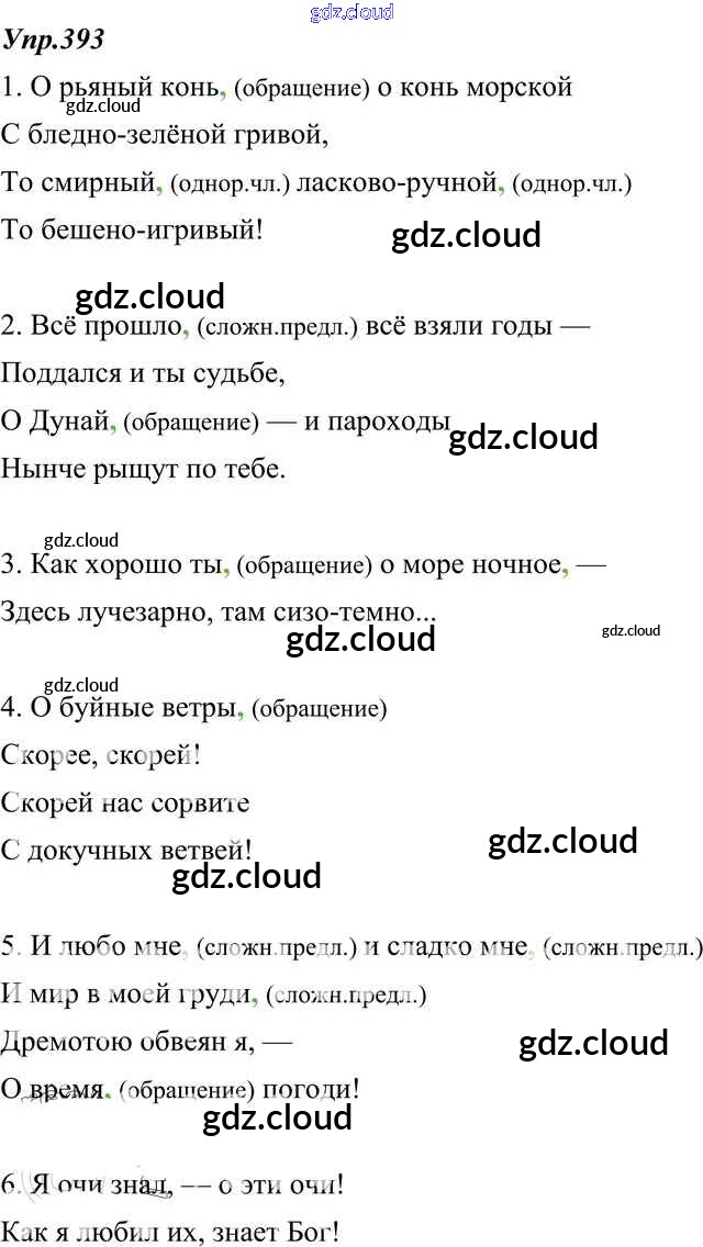 Ответ на задание 393 Учебник Русский язык за 8 (восьмой) класс Тростенцова, Ладыженская, Дейкина, Александрова 2014