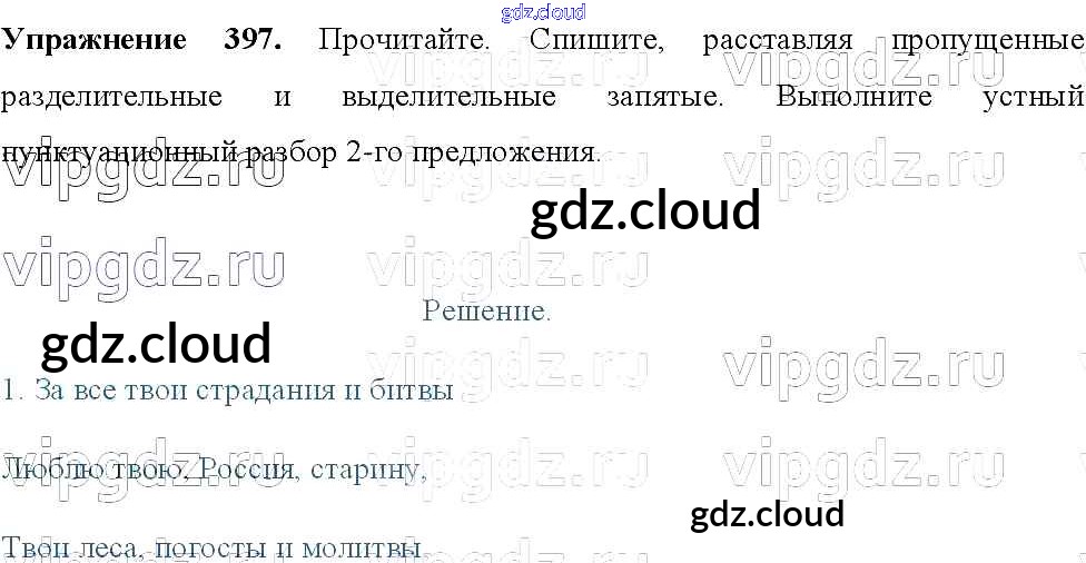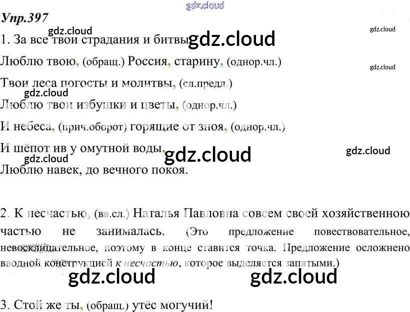 Ответ на задание 397 Учебник Русский язык за 8 (восьмой) класс Тростенцова, Ладыженская, Дейкина, Александрова 2014