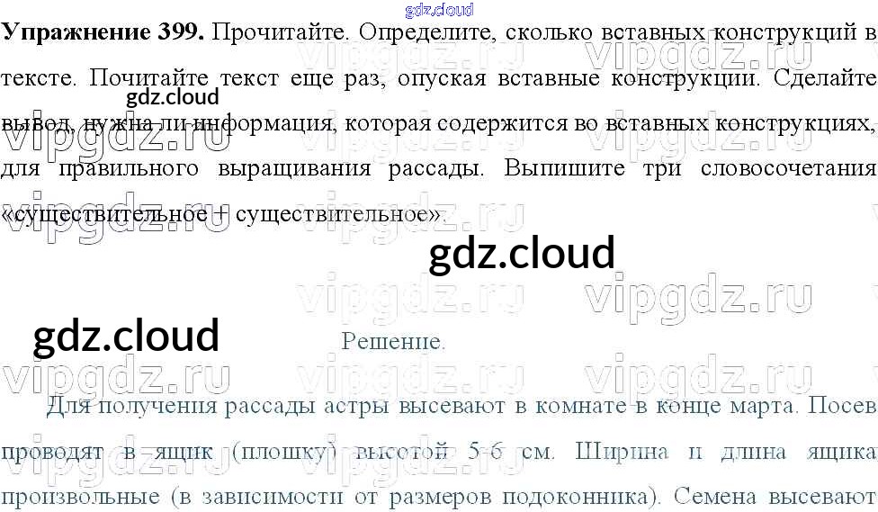 Ответ на задание 399 Учебник Русский язык за 8 (восьмой) класс Тростенцова, Ладыженская, Дейкина, Александрова 2014