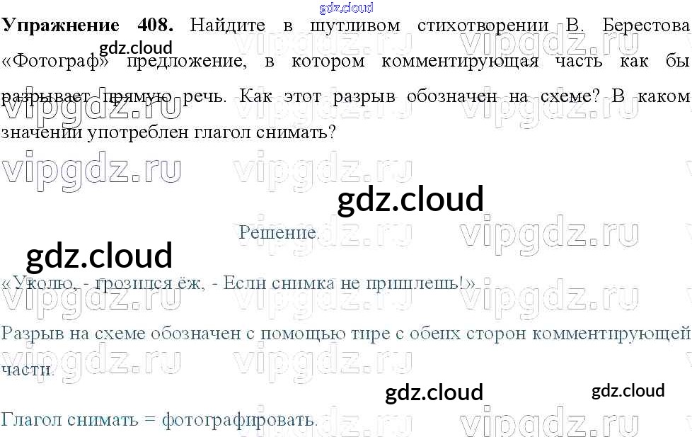 Ответ на задание 408 Учебник Русский язык за 8 (восьмой) класс Тростенцова, Ладыженская, Дейкина, Александрова 2014