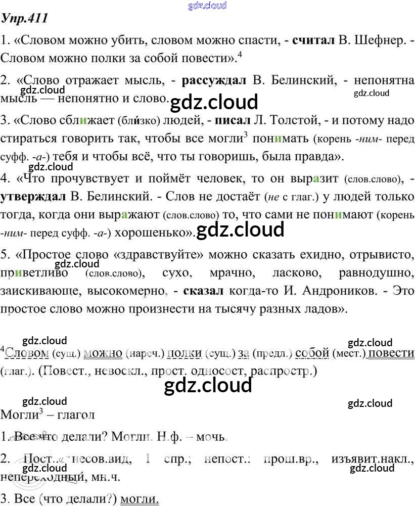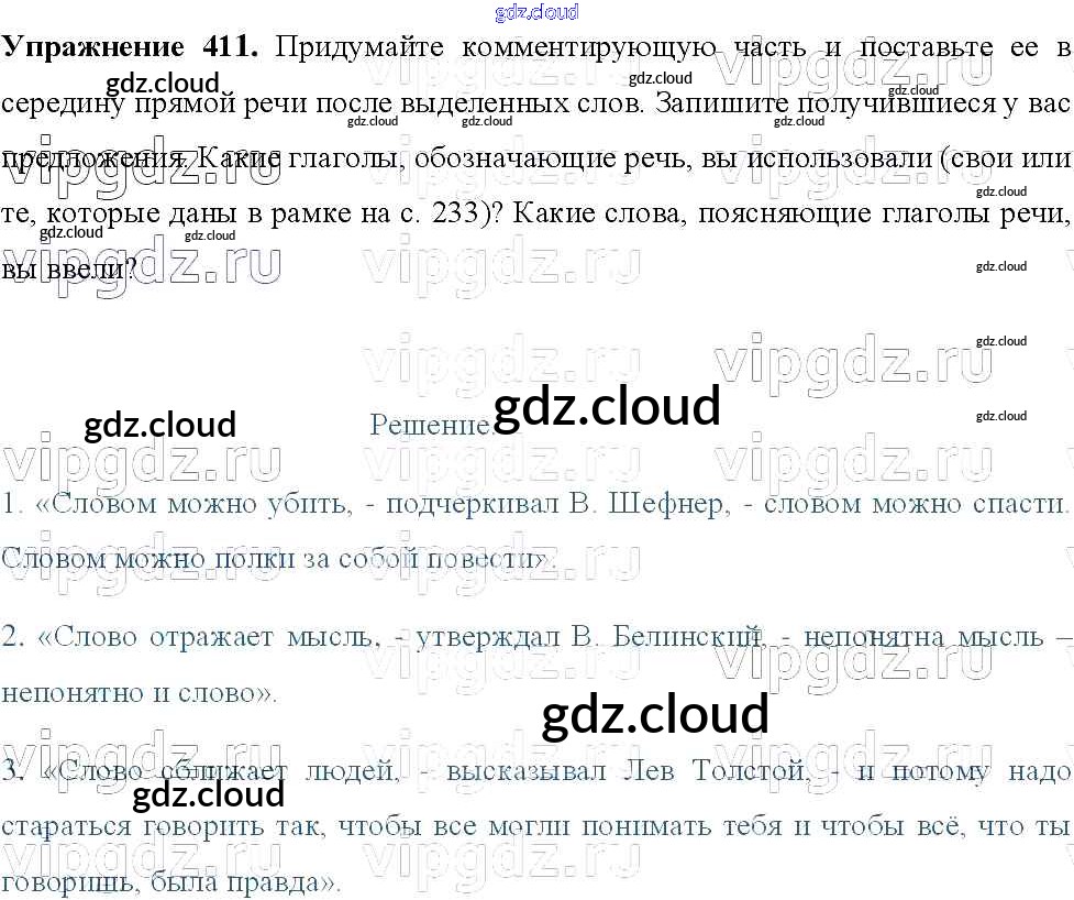 Ответ на задание 411 Учебник Русский язык за 8 (восьмой) класс Тростенцова, Ладыженская, Дейкина, Александрова 2014