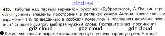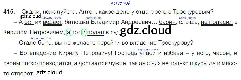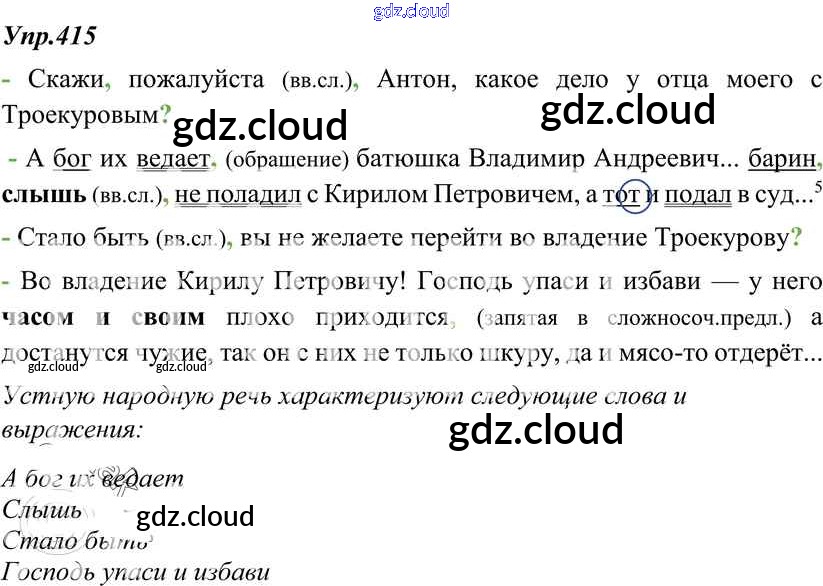 Ответ на задание 415 Учебник Русский язык за 8 (восьмой) класс Тростенцова, Ладыженская, Дейкина, Александрова 2014