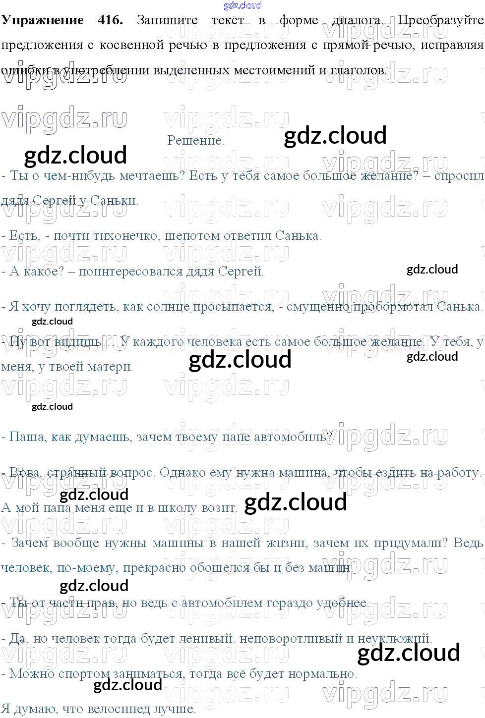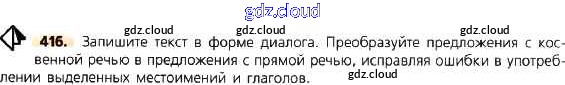 Ответ на задание 416 Учебник Русский язык за 8 (восьмой) класс Тростенцова, Ладыженская, Дейкина, Александрова 2014