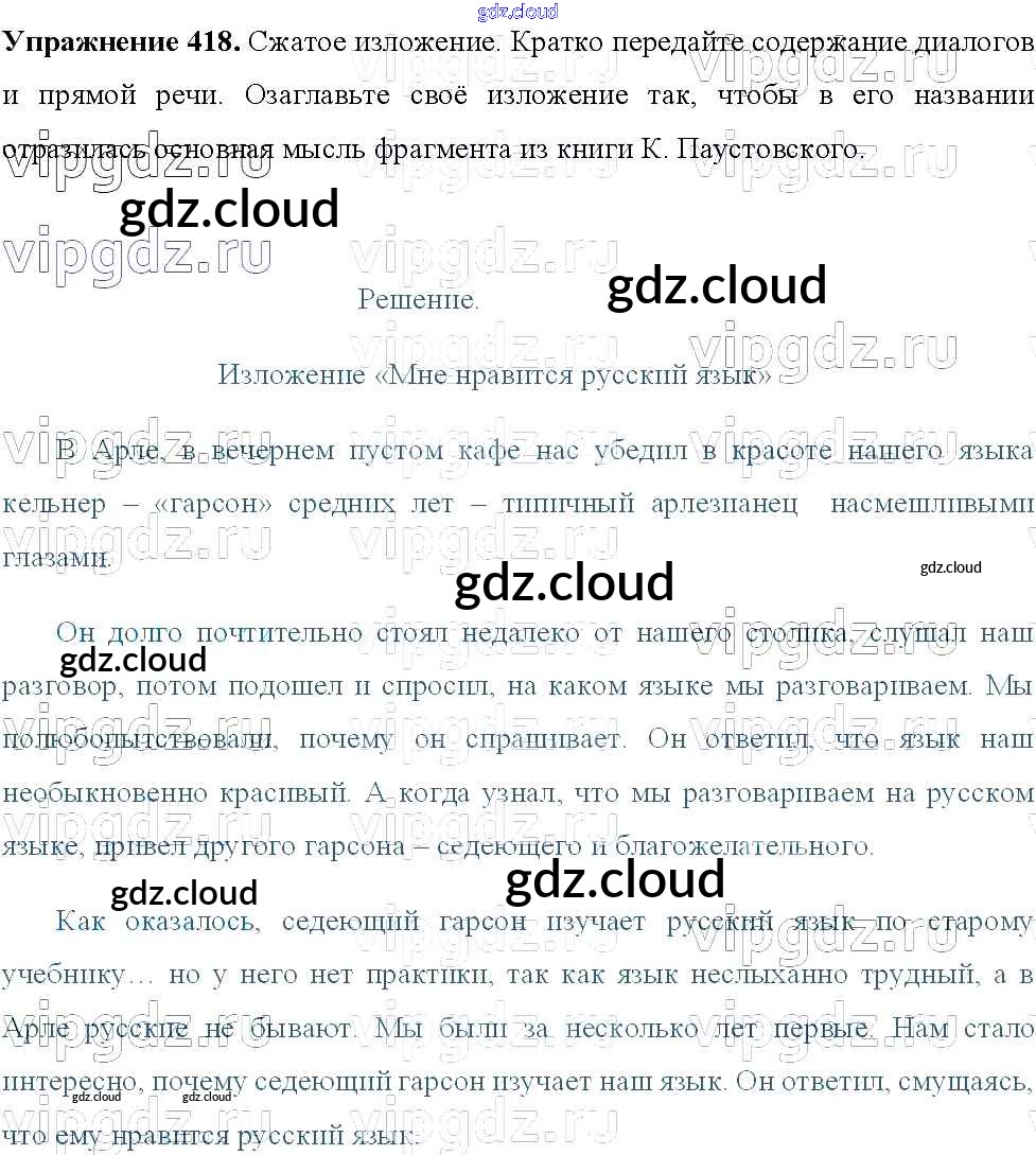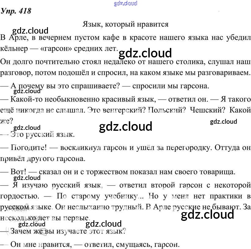 Ответ на задание 418 Учебник Русский язык за 8 (восьмой) класс Тростенцова, Ладыженская, Дейкина, Александрова 2014