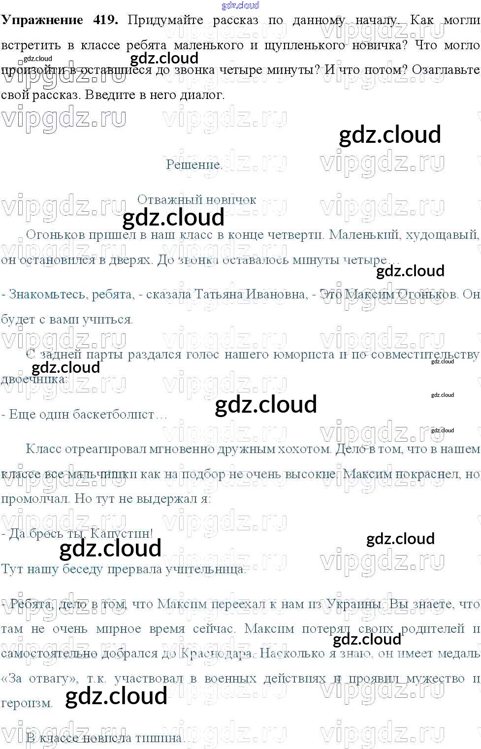 Ответ на задание 419 Учебник Русский язык за 8 (восьмой) класс Тростенцова, Ладыженская, Дейкина, Александрова 2014