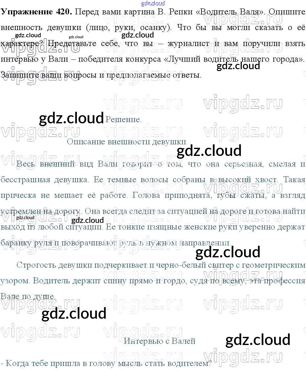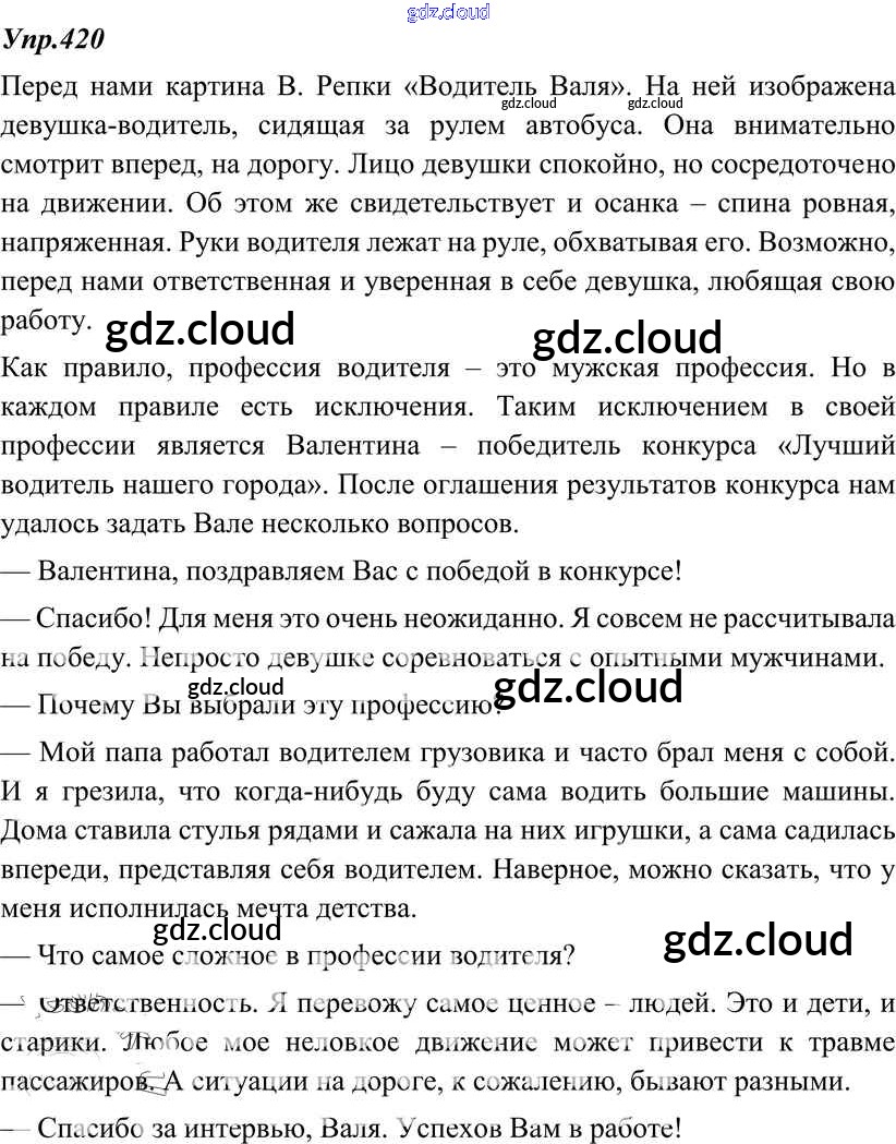 Ответ на задание 420 Учебник Русский язык за 8 (восьмой) класс Тростенцова, Ладыженская, Дейкина, Александрова 2014