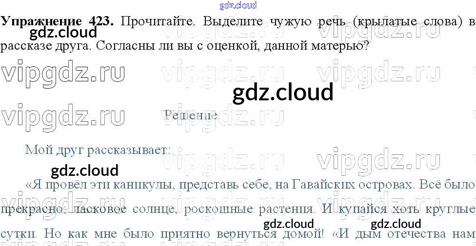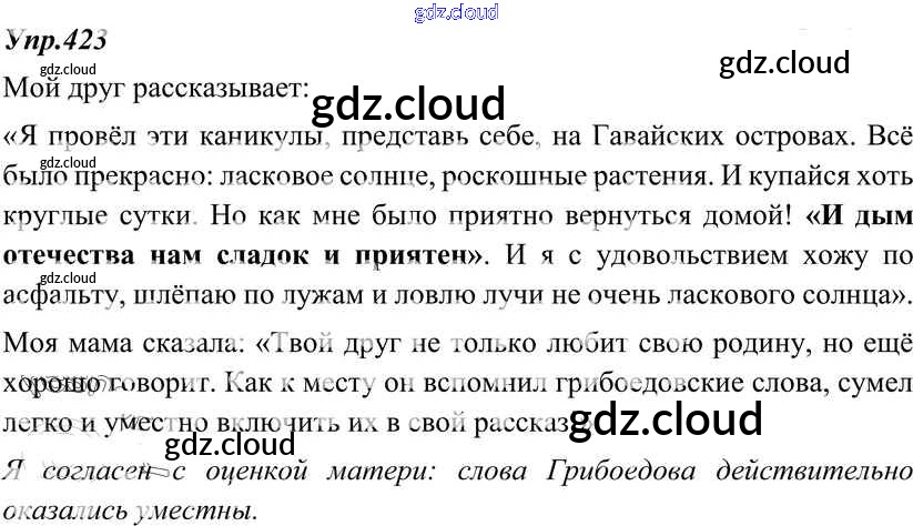Ответ на задание 423 Учебник Русский язык за 8 (восьмой) класс Тростенцова, Ладыженская, Дейкина, Александрова 2014